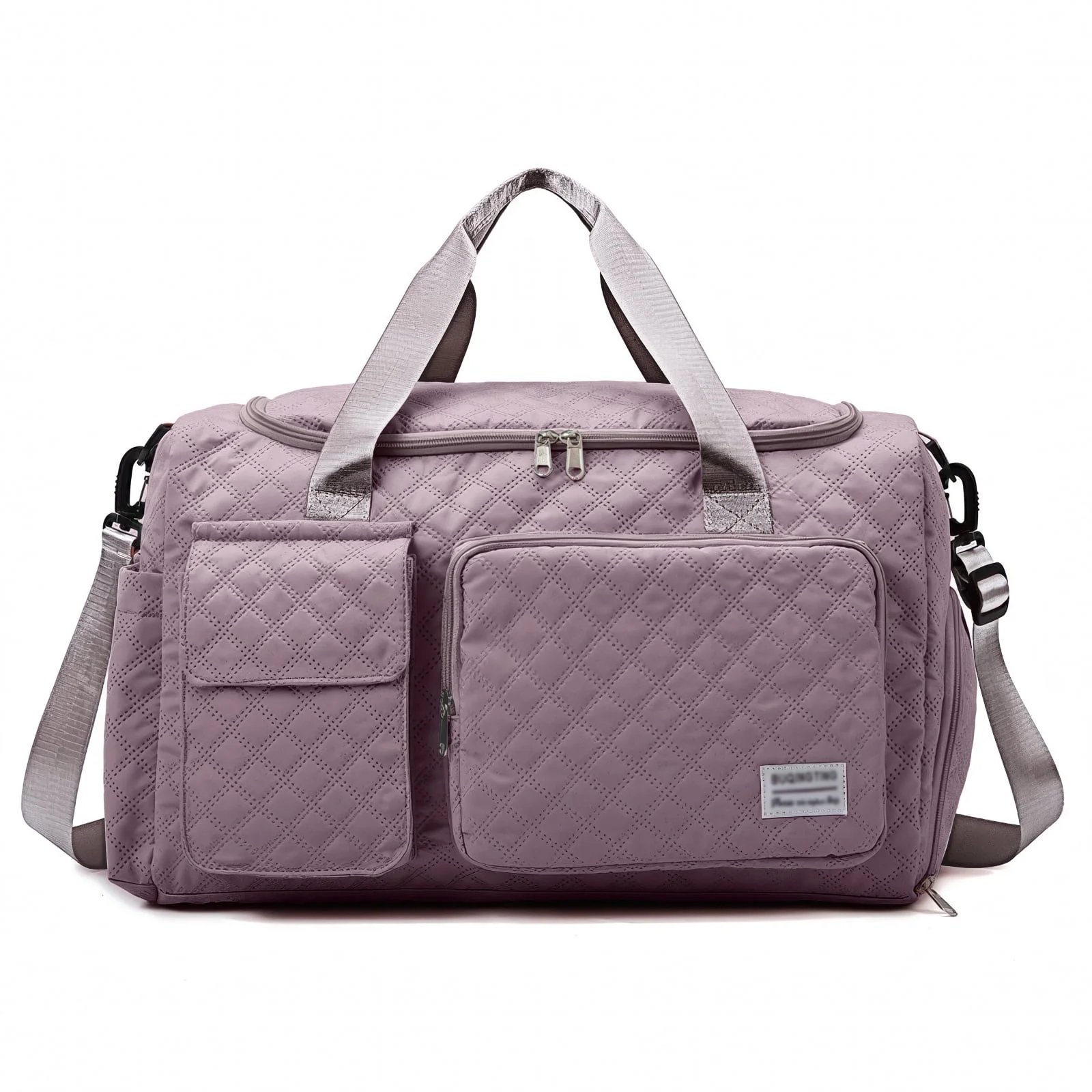 Travel Duffle Bag for Women Men, Weekender Bags Carry on Gym Bag with Wet Pocket/Adjustable Strap/Shoe Compartment, Foldable Waterproof Overnight Tote Bag for Plane Sports Dance, Ivory